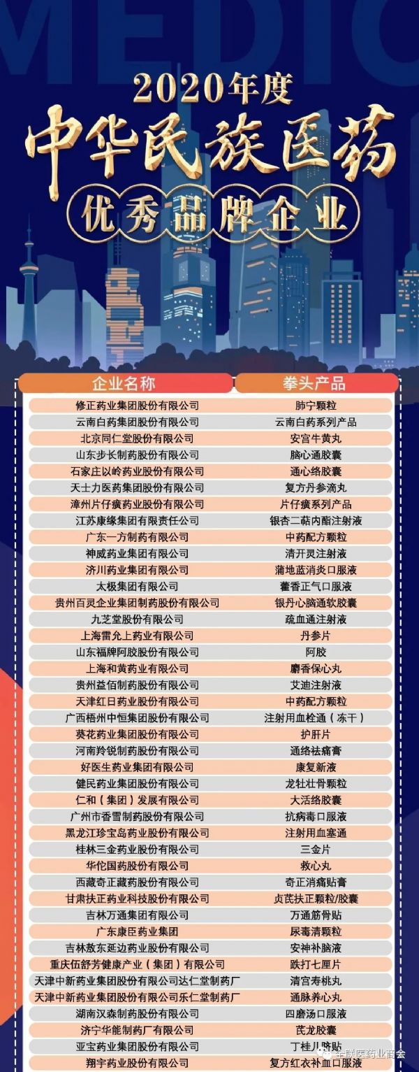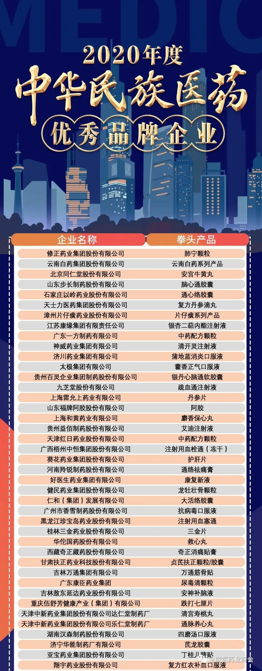 全國工商聯(lián)醫(yī)藥業(yè)商會通過企業(yè)申報、地方工商聯(lián)推薦、各專業(yè)分會信息匯總以及網(wǎng)絡(luò)數(shù)據(jù)分析等途徑,經(jīng)過秘書處統(tǒng)計整理,綜合市場銷售額、行業(yè)占比、品牌認知、科技創(chuàng)新、國際化程度以及企業(yè)專精特新的特點等因素,報評審委員會評選出“2020 年度中華民族醫(yī)藥優(yōu)秀品牌企業(yè)”。本次評選,旨在弘揚民族醫(yī)藥、打造民族品牌,樹立行業(yè)標桿、發(fā)揮榜樣作用、促進民族醫(yī)藥產(chǎn)業(yè)健康發(fā)展。