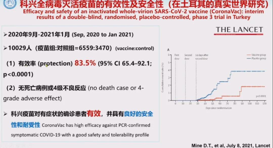 另一項研究發(fā)表在《柳葉刀》上,研究顯示,科興疫苗在土耳其的有效率達83.5%,同時沒有出現(xiàn)因為接種疫苗而產(chǎn)生嚴重不良反應(yīng)和死亡的報告。鐘南山介紹,這項研究同樣表明科興疫苗對接種者有很好的保護效果,并且安全而具有耐受性!