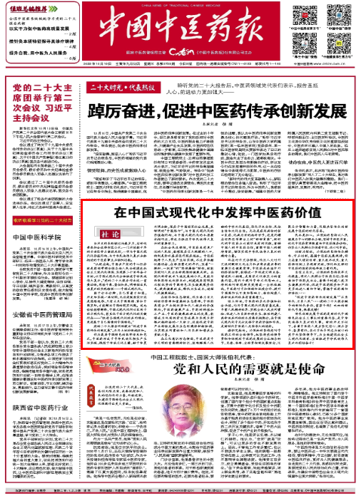 【中國中醫(yī)藥報(bào)社論】在中國式現(xiàn)代化中發(fā)揮中醫(yī)藥價(jià)值