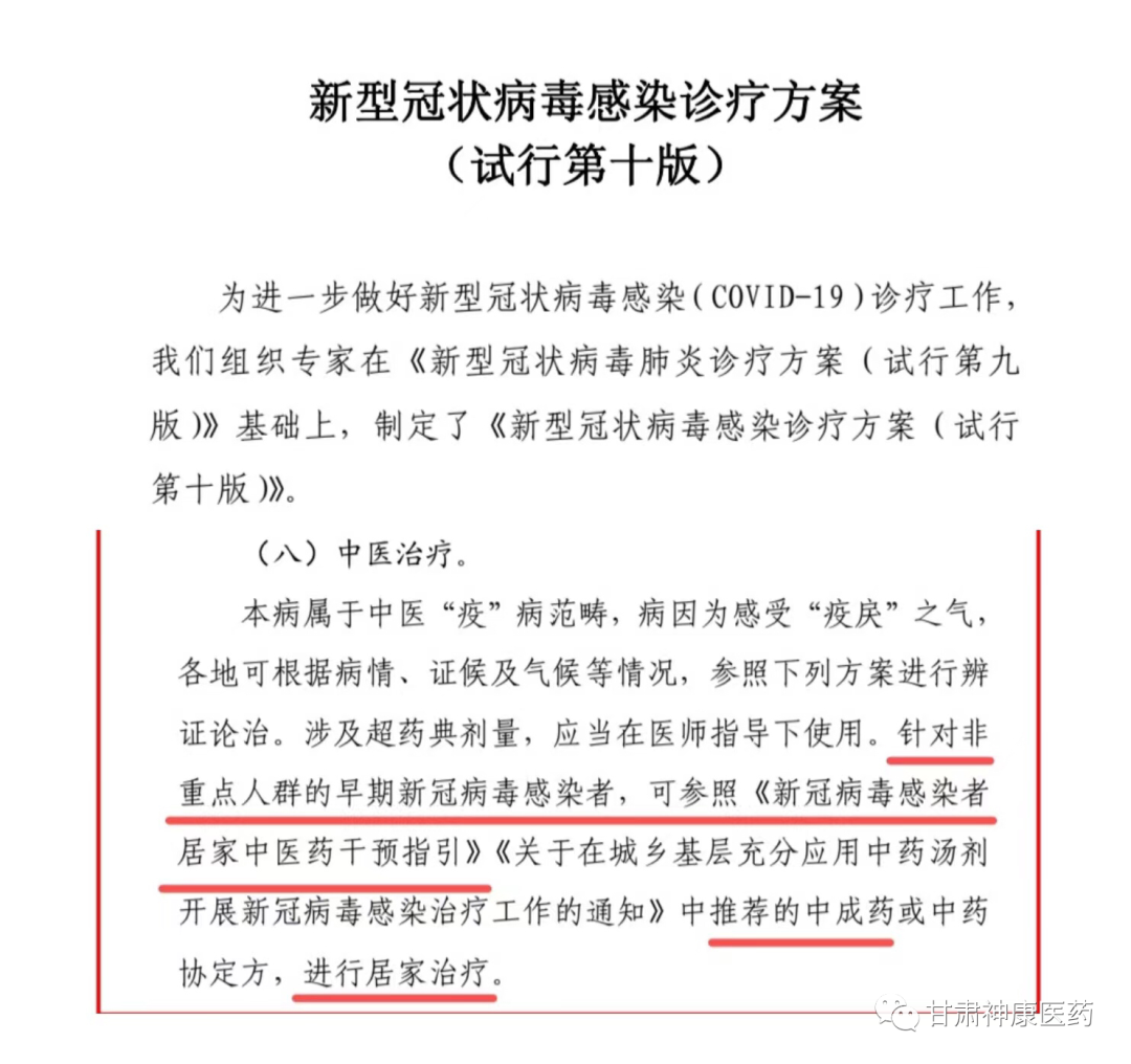 1月5日國(guó)家衛(wèi)生健康委辦公廳、國(guó)家中醫(yī)藥局綜合司發(fā)布的《新型冠狀病毒感染診療方案(試行第十版)》,在中醫(yī)治療部分,明確提出針對(duì)非重點(diǎn)人群的早期新冠病毒感染者,可參照《新冠病毒感染者居家中醫(yī)藥干預(yù)指引》《關(guān)于在城鄉(xiāng)基層充分應(yīng)用中藥湯劑開(kāi)展新冠病毒感染治療工作的通知》中推薦的中成藥或中藥協(xié)定方,進(jìn)行居家治療。