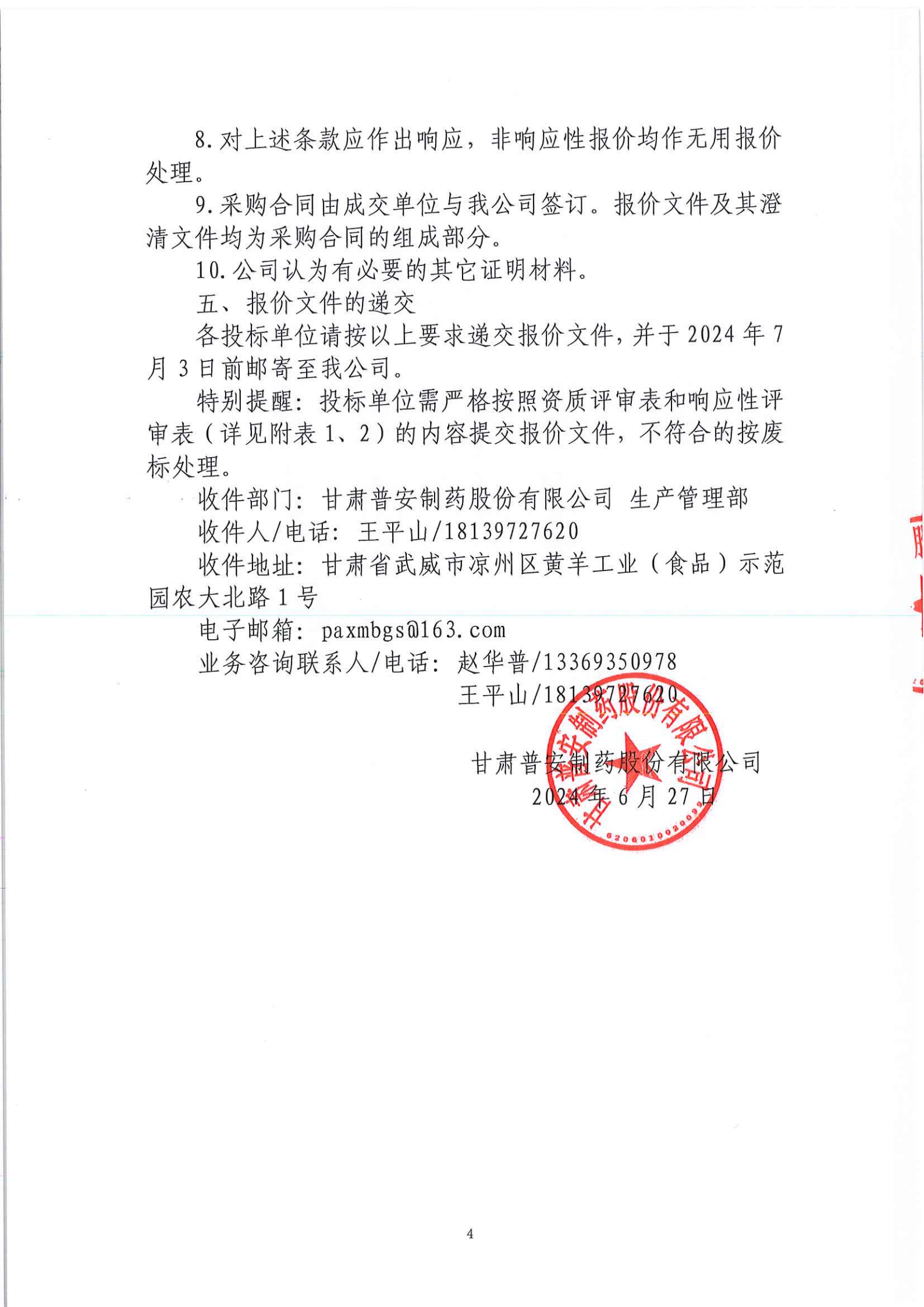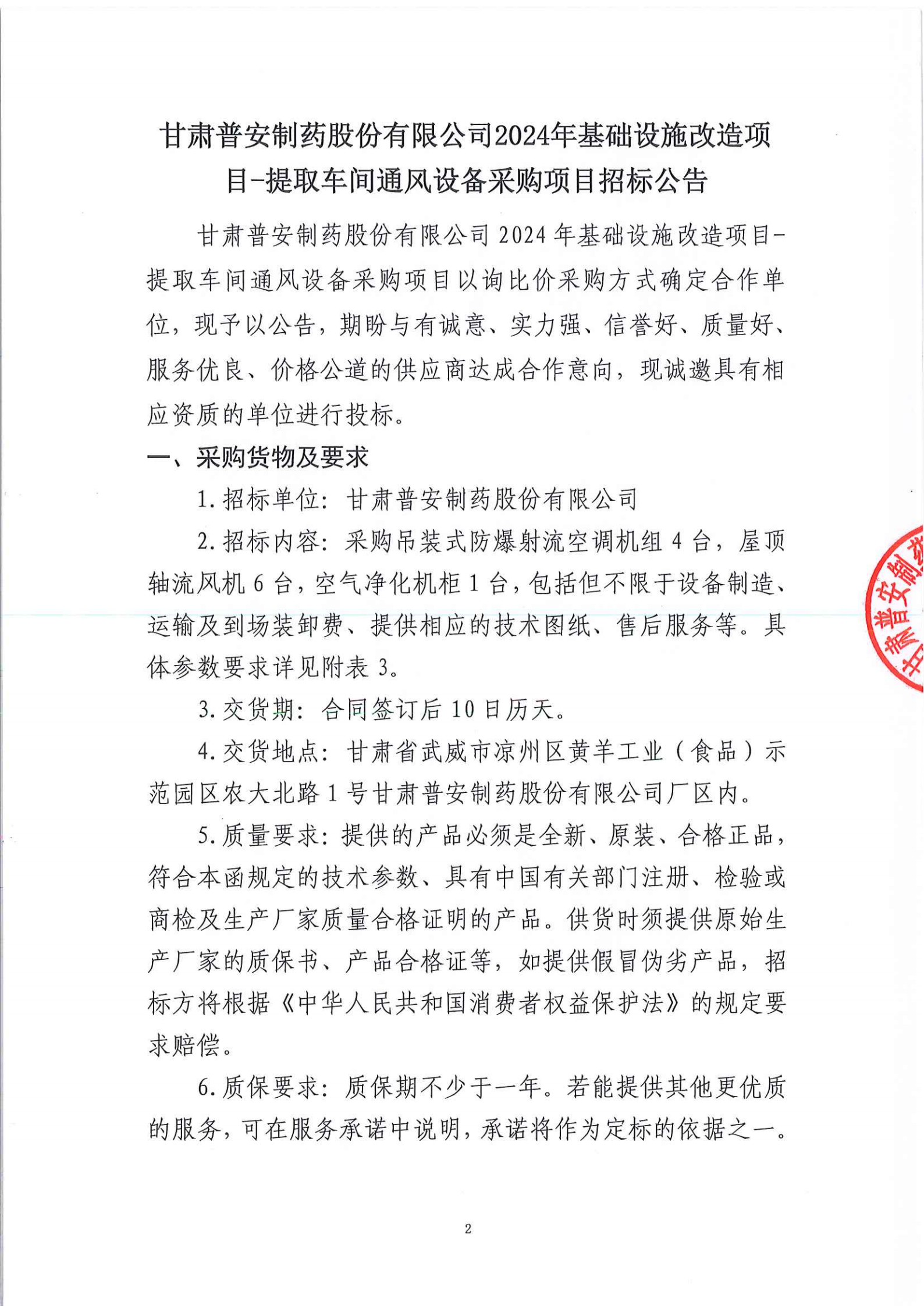 甘肅普安制藥股份有限公司2024年基礎(chǔ)設(shè)施改造項(xiàng)目-提取車間通風(fēng)設(shè)備采購(gòu)項(xiàng)目招標(biāo)公告