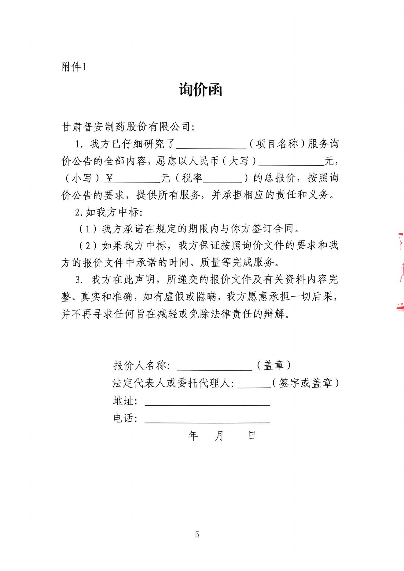 甘肅普安制藥股份有限公司智能工廠申報咨詢服務(wù)詢價公告