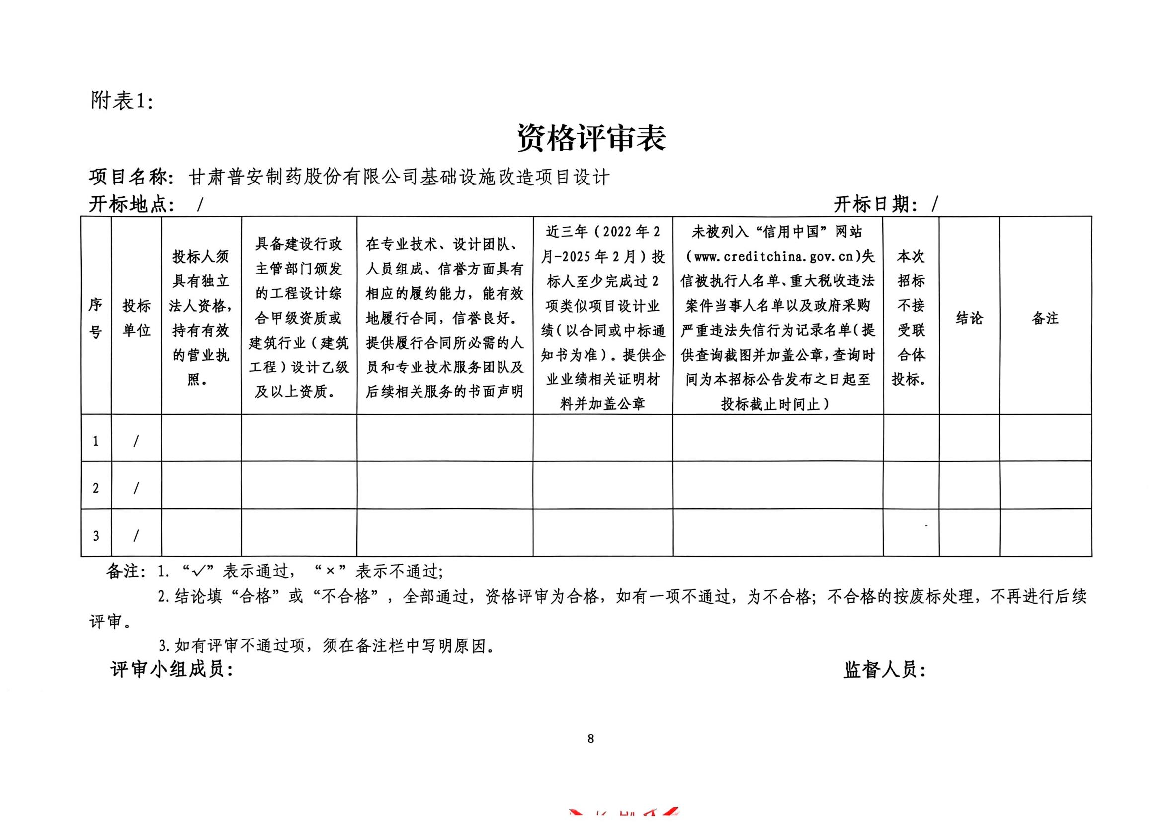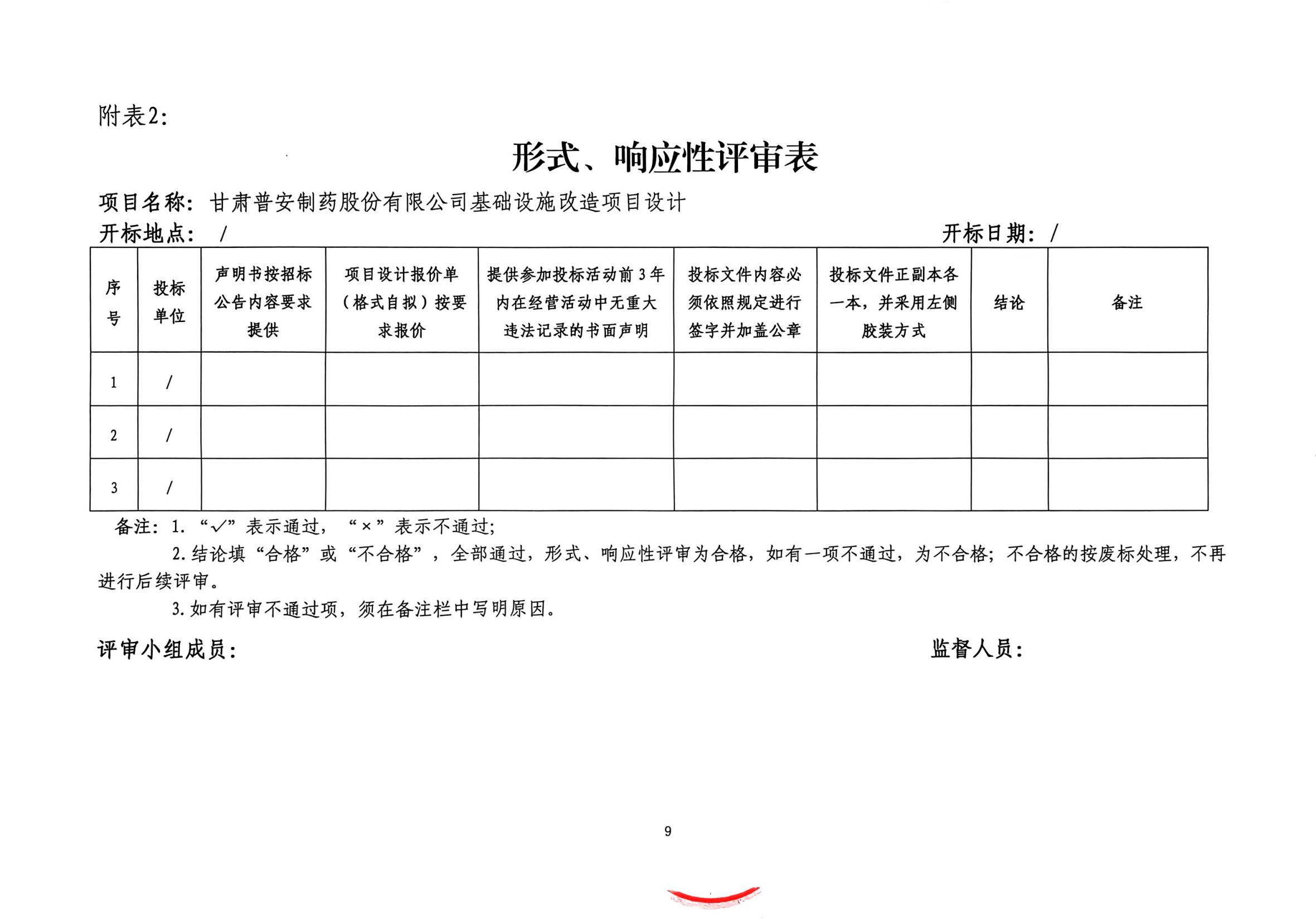 甘肅普安制藥股份有限公司基礎(chǔ)設(shè)施改造項(xiàng)目設(shè)計(jì)招標(biāo)公告