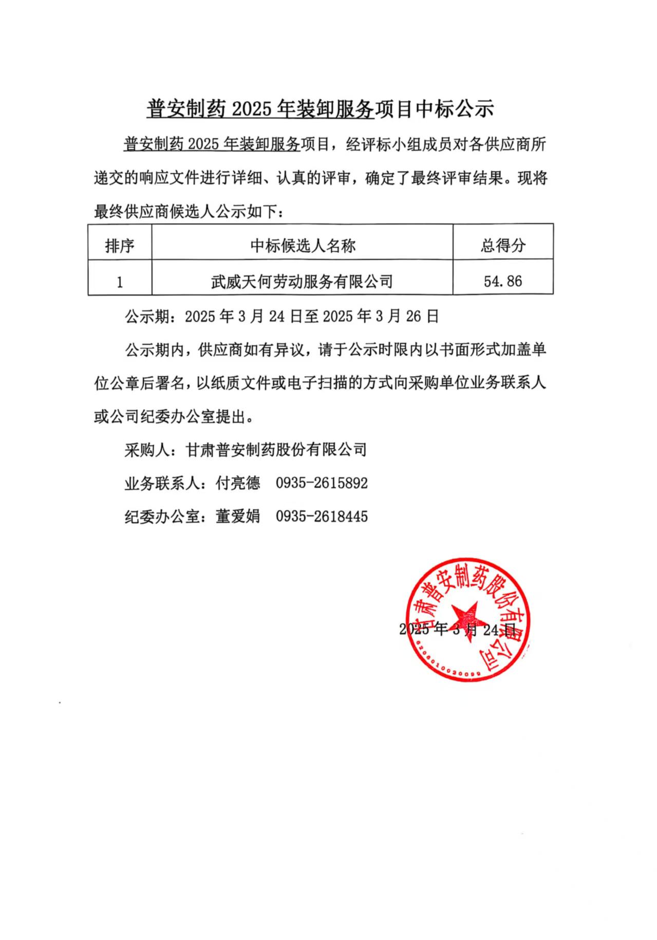 普安制藥 2025 年裝卸服務(wù)項(xiàng)目中標(biāo)公示